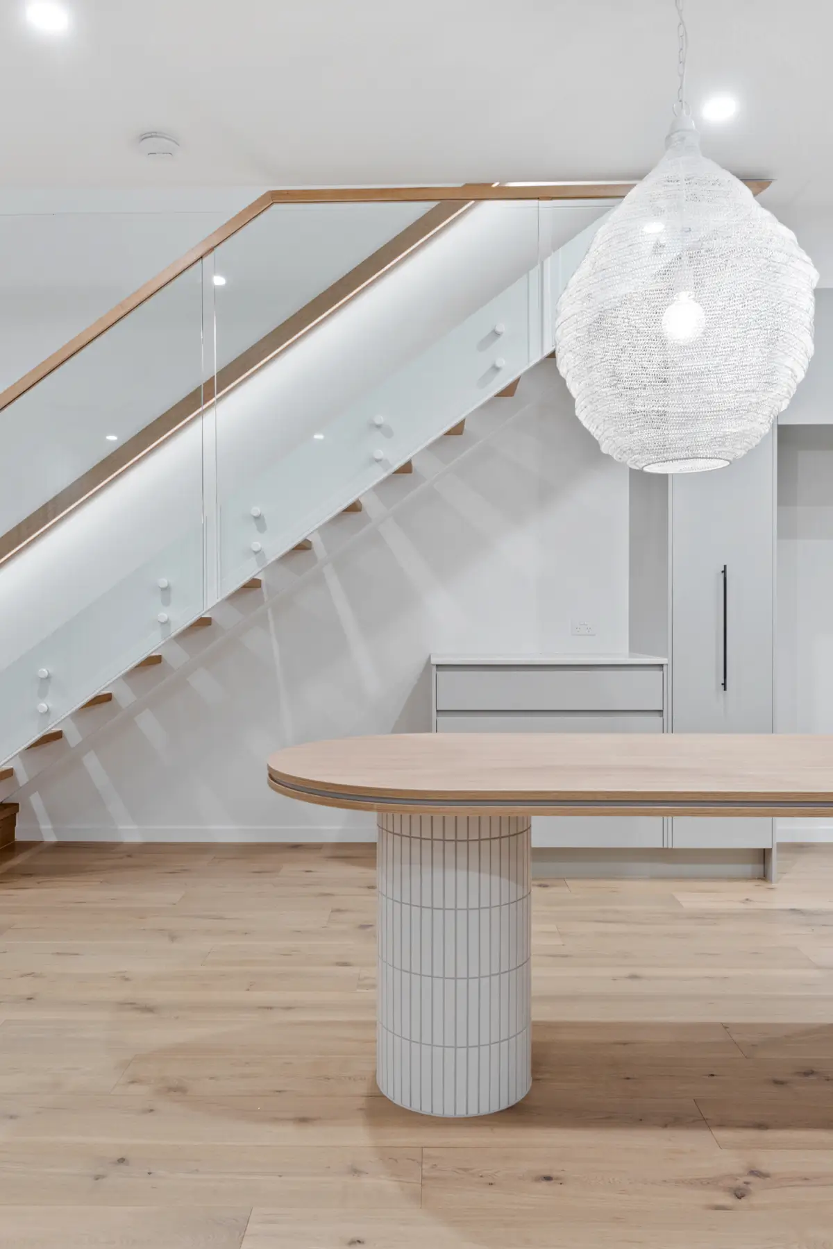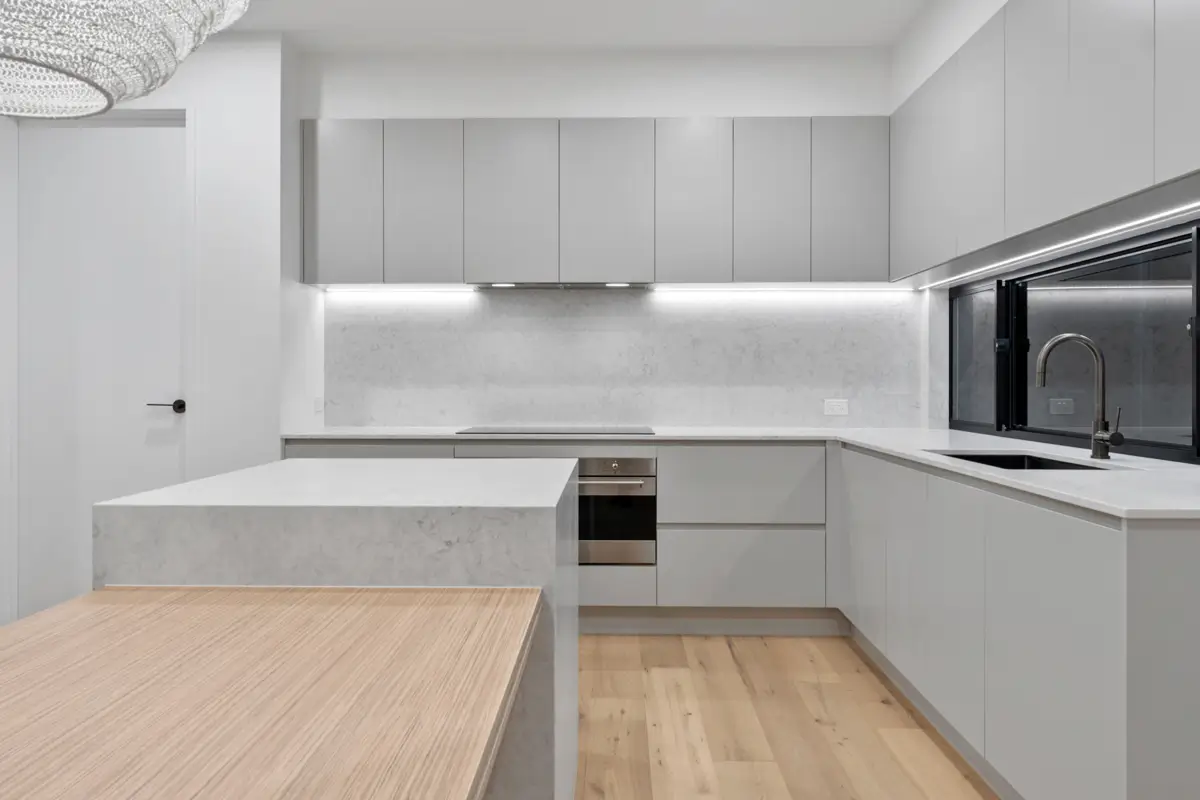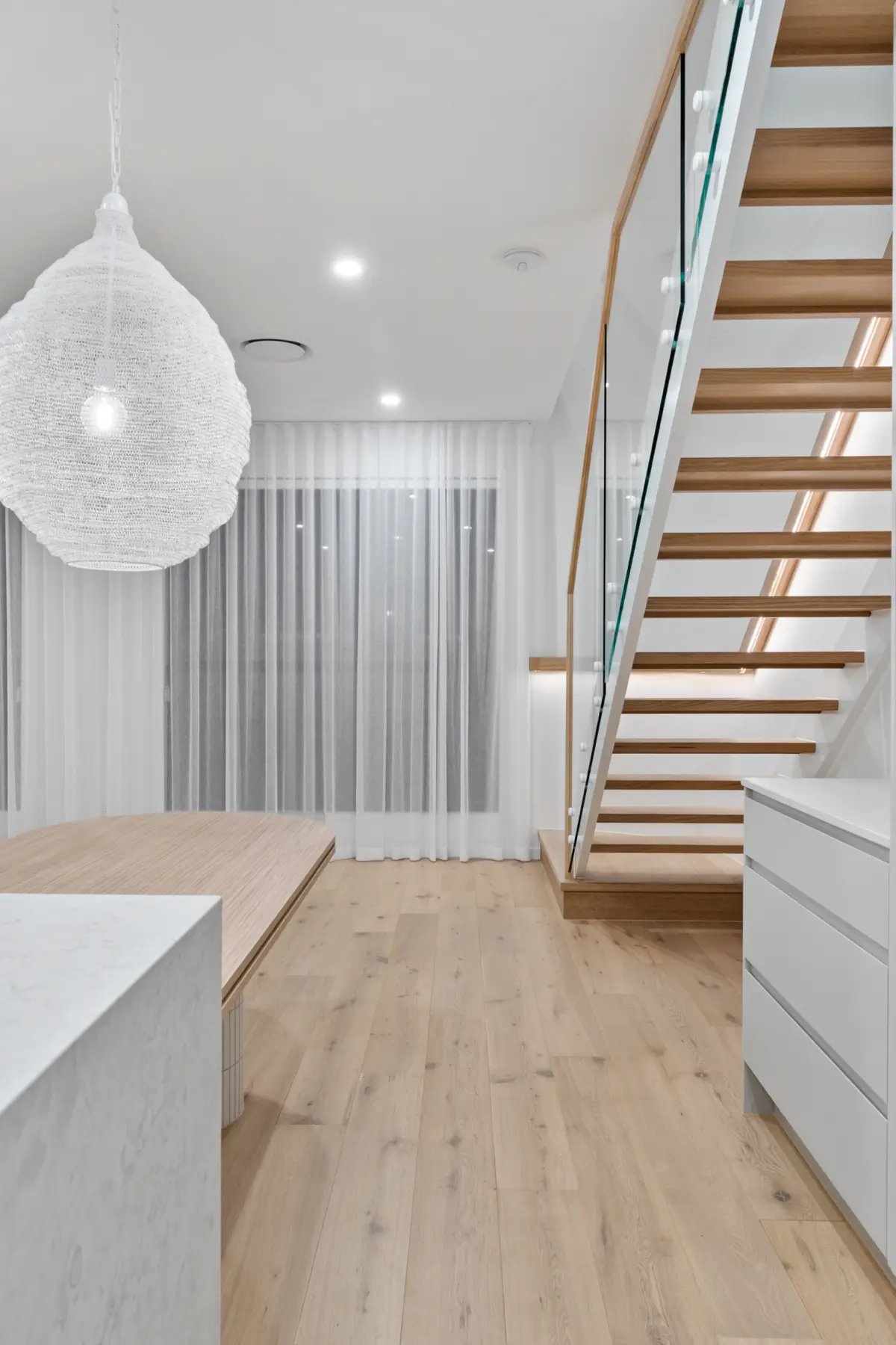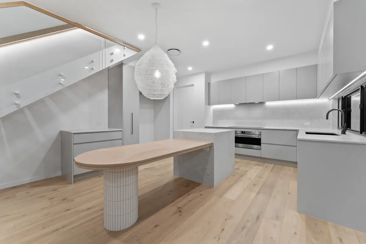 East House presents luxury townhomes designed to maximise space, style, and comfort on a sloped site. Each residence has been carefully planned to make the most of the natural topography, incorporating tandem or double garages and generous multi-level living that feels both efficient and expansive.