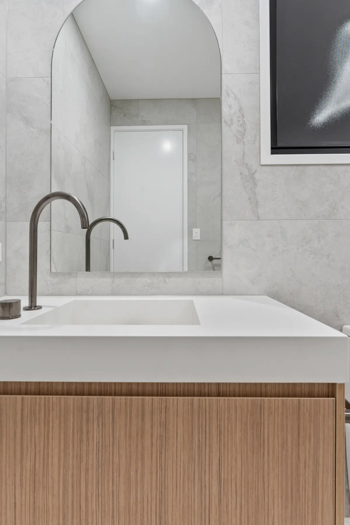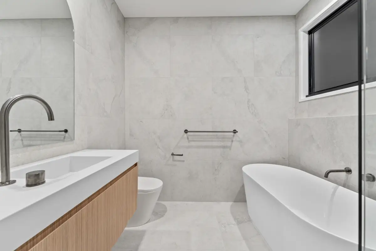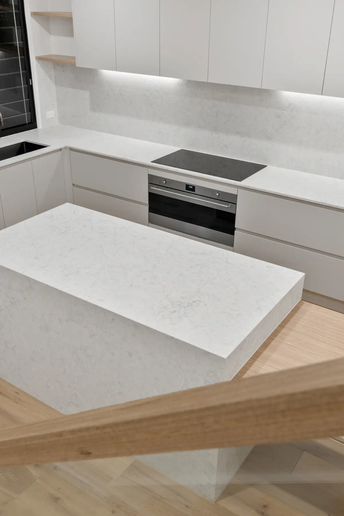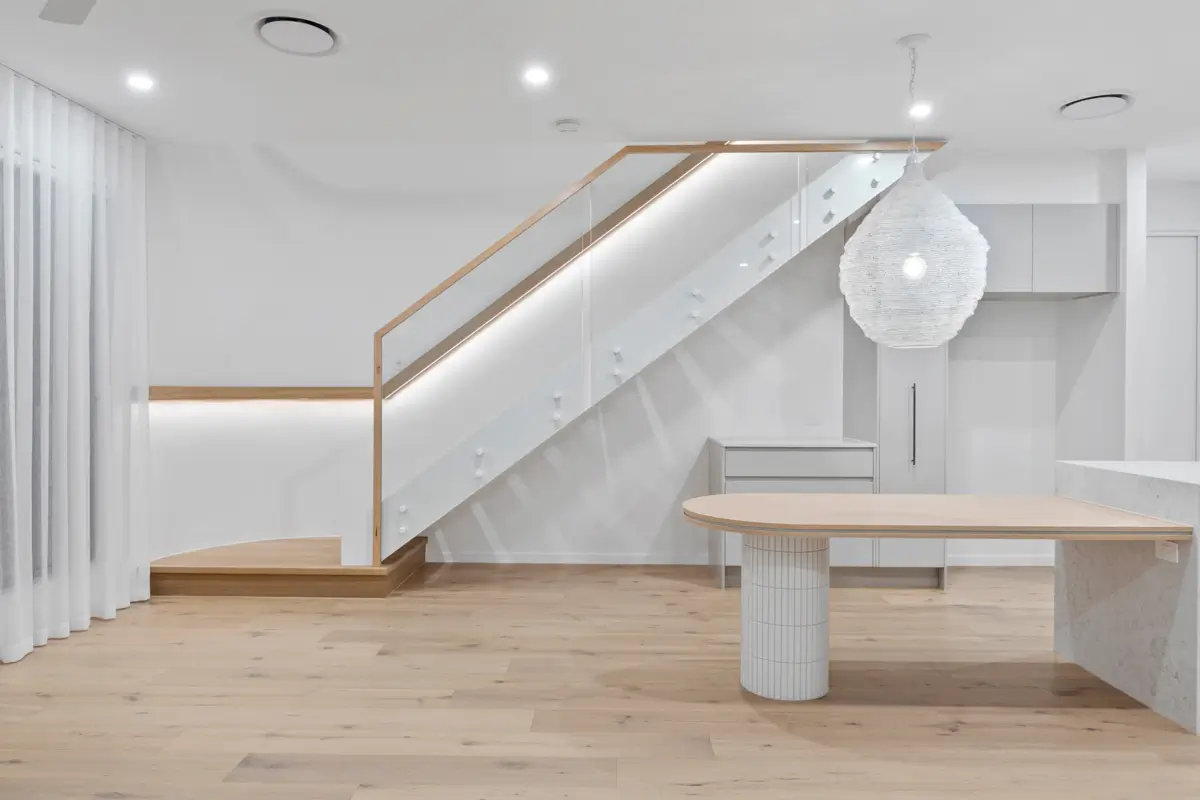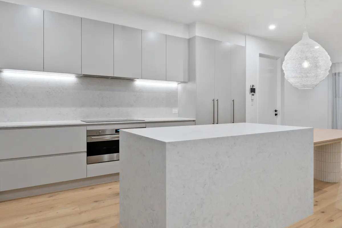 East House presents luxury townhomes designed to maximise space, style, and comfort on a sloped site. Each residence has been carefully planned to make the most of the natural topography, incorporating tandem or double garages and generous multi-level living that feels both efficient and expansive.